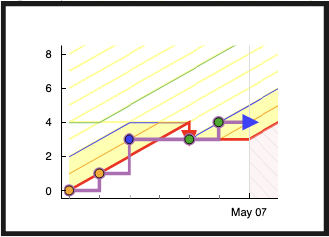 The most important feature of a Beeminder graph is the bright red line. It shows you where you're going. Keep your dots on the good side of that bright line and Beeminder won't charge you.